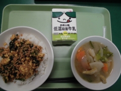 ★今日の給食はさけの三色丼と新玉ねぎの味噌汁でした。丼物は子どもも大好きなので、食も進みます。今日の味噌汁は久しぶりの白みそだったので、(個人的には大好きです)赤みそのお味噌汁しか飲んでいない子どもは少し戸惑っていました。