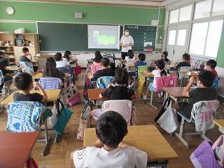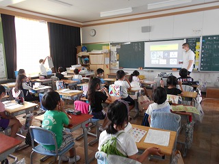 いつもは担任が授業をしているのですが、この日はALTのリッキー先生と一緒に学習しました。