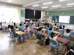 ★少し雨が降りましたが、どの子も夏休みの思い出をいっぱい詰め込んで、元気に登校してきました。