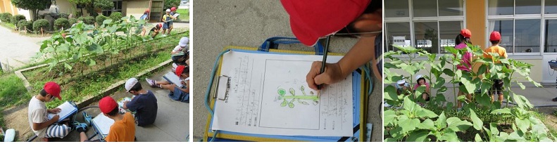 暑い日が続いていますが,そんな暑さに負けずにぐんぐん生長をしています。夏休み前に植物の生長を観察しました。葉っぱの数や茎の太さに気を付けながら観察をしました。花はまだ咲いていませんが,二学期には今日と違った様子が見られると思います。夏休みも生長が楽しみです。