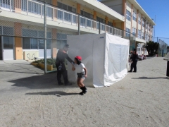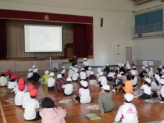 今日は3年生の防火教室がありました。四日市中央分署の消防士の皆さんにお世話になりました。