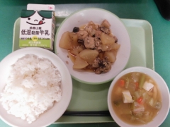 ★今日の給食はぶり大根と味噌汁でした。ぶり大根は大根に味が染みていて美味しかったです。