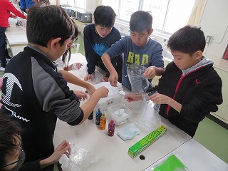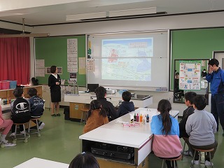 2学期に学習した「四日市公害から学ぶ」に関わって,東ソー出前授業が行われました。かつて環境汚染で問題となっていた企業からの,現在環境を守るために努力をしている取り組みやその成果についての話がありました。四日市公害を過去の問題としてとらえるのではなく,これから自分たちがすべきことを考えるような授業となりました。後半ではバスボム作りにも取り組み,子どもたちにとって有意義な時間となりました。