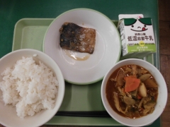★今日の給食はさばのしょうが煮と豚汁でした。ザ・和食のメニューでしたが、子どもたちはお味噌汁が好きなので、具だくさんの豚汁でしたが、しっかり食べていました。