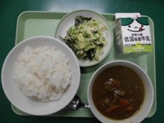 ★今日の給食はカレーと海そうサラダでした。3月の献立テーマは「思い出いっぱいメニュー」です。6年生のみなさんにアンケートをとって、6年間で食べた給食の中で思い出に残っている給食を3月の給食の献立に取り入れているそうです。どんなメニューが出てくるのか?楽しみです。