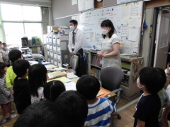 ★1年生が先生と一緒に学校探検をしました。どのクラスもきちんと挨拶をして入室し、話をしっかり聞き、見て学習をしました。今度は2年生から、学校の説明をしてもらうそうです。