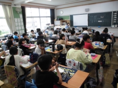 ★今日は全員お弁当の日です。どのクラスへ行っても、静かに食べていました。いつもの給食より早く食べ終わる子が多かったようです。「(量が)ちょっと足らんだぁ・・」明日はもう少し多めに入れてもらうといいですね。