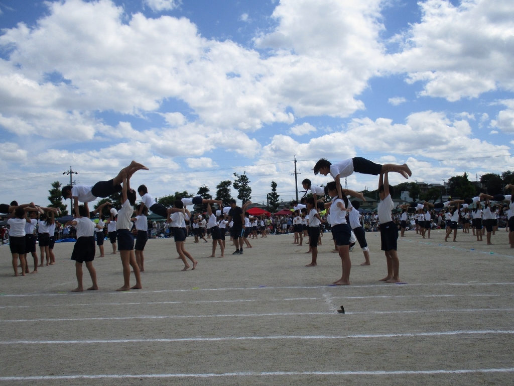 特に,初めて取り組んだ組体操では仲間と励ましあいながら,