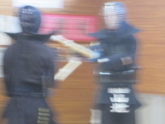 あっ 久々に 渡地先生が 防具をつけて 稽古している