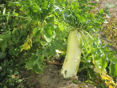 見事な 大根が 育ちました 収穫の 冬 ( はやく 収穫しないと・・・ )