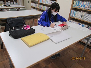 また、放課後の図書室解放やこども教室を活用し、集中して学習を進める生徒の姿も見られます。静かな環境で課題に向き合い、より充実した学習時間を過ごしているようです。
