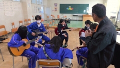 軽音サークルでは、お互いに教えあいながら練習する姿が見られました。