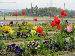 ダイラの誇る 花壇にも さまざま 咲き誇っています