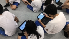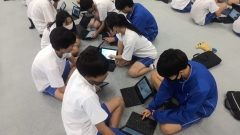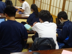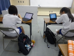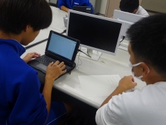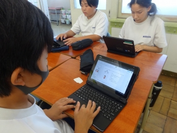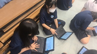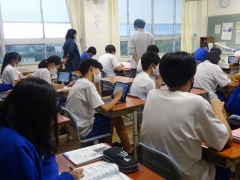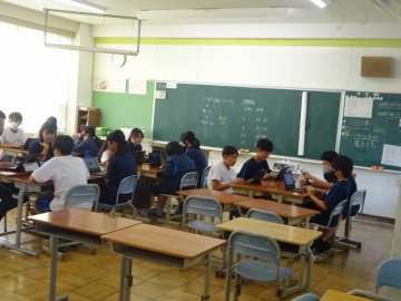 授業では、「コンビニエンスストアで販売されている2Lの水と600mlの水の値段を調べ、それをスライドにまとめる」というお題で作成後、意見交換を行いました。