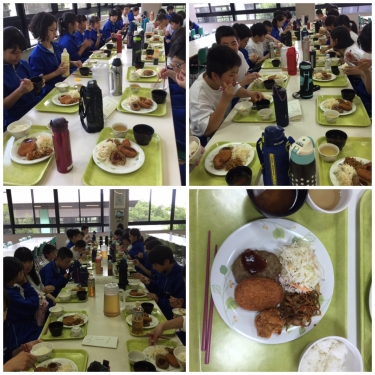 夕食は「がっつり定食」です。いただきますをした直後からおかわりをしていた生徒もいて、みんなたくさん食べていました。