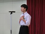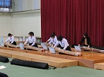 3年生総合選択音楽の筝の演奏と5組のみなさんによるトーンチャイムの演奏。3年生の英語のスピーチでは、3人がそれぞれのテーマでわかりやすく発表をしてくれました。