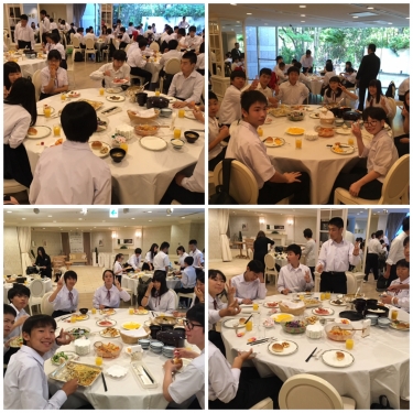 今朝は6時のモーニングコールで起きて、ホテルで朝食をいただいています。