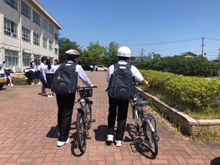 今日、2年生はお昼から職場体験の事前訪問に行きました。