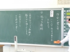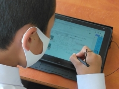 タブレットをつかって、自由進度学習を行っています。小プリントで練習から始まり、問題集でさらに練習しタブレット教材で定着をはかります。どんどん深まったり広がったりしています。こちらは国語の授業です。おっ、作文の書き方指導ですね。