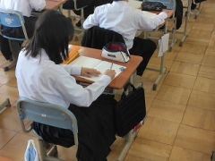 100字以内でとか、伝える相手を想定してとか条件があるのもいいですね。この学習をぜひとも丁寧にやってほしいと思います。まず、テーマにそって結論を述べる。そして、その結論をうらづける情報を順序立てて述べたり、根拠となる自分の考えや意見をのべたりする。こうしたフレームを1つしっかり持っていると書くだけでなく話す場合でも使えます。生徒は、お題を変えながら練習しています。