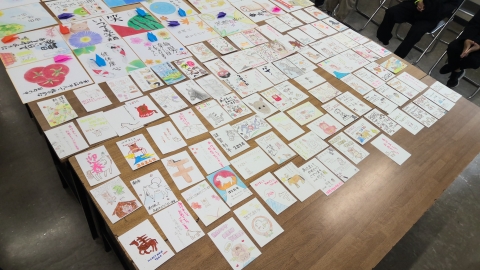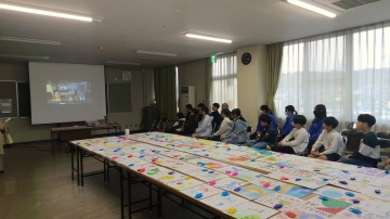 この年賀状は神前地区で1人暮らしをしている高齢者の方々に届けられます。民生委員の方々が、どのような形で訪問しているかビデオを通して知ることができました。3人とも、とても真剣に話を聞いていました。3人は「この年賀状を楽しみにしてくれる人がいることがとても嬉しいし、この活動を続けていきたい」と話してくれました。