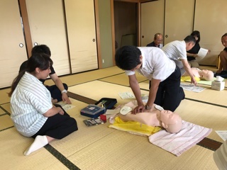 今日の放課後、教職員向けのAED講習会を行いました。模型を使い、胸骨圧迫や人工呼吸を実際に行ったり、練習用のAEDを使って応急処置の練習をしました。いつ、どこで、何が起きるか分かりません。そのときに命を救う行動を教職員全員がとれるように確認をしています。