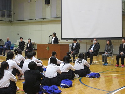その後離任される先生方より、生徒の皆さんに一人ひとりあたたかい贈ることばをいただきました。頂いた言葉を胸に、4月からも新しいチャレンジを続けていきましょう!!