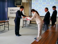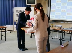 三重平中学校PTA会長より、企業様へ感謝状を贈呈しました。