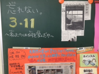 1日も早い復興を願うとともに、この地方で大きな災害があったときに自分たちはどうすれば良いのだろうと考えなければならないなと、保健室前の掲示を見ながら改めて思いました。