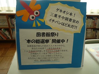 図書館まつりは11月20日まで行いますので、三重平中の生徒のみなさんはぜひ、図書室へ来てください。