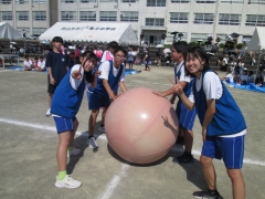 大玉転がしでは、最初は苦戦するものの、最後には群の気持ちが一つとなり、みんなで協力して学年の壁をこえて競技を楽しむことができました。