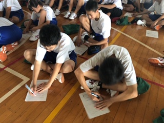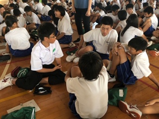 今日は5・6限目に、人権についてのお話を八郷小学校の三輪校長先生にしていただきました。