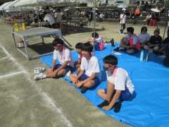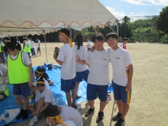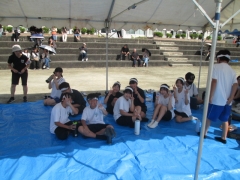 テントにいる生徒も競技している人を応援していました。