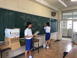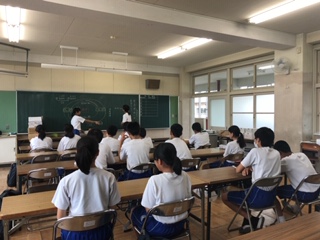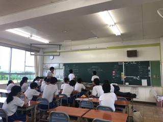 今日の1限目は、各学年が東西南北の4チームに分かれて行う「学年種目」「全員リレー」の説明や走順決めを行いました。