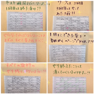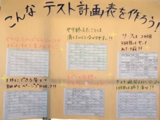 先日、2学期末テストが終わったばかりですが、うまく計画を立ててテスト勉強していた人の見本が掲示してありました。