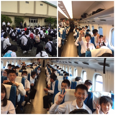 今日から3日間3年生は修学旅行です。朝6時30分に学校を出発し、今、新幹線に乗ったところです。雨もあがり、快適に過ごせそうです。
