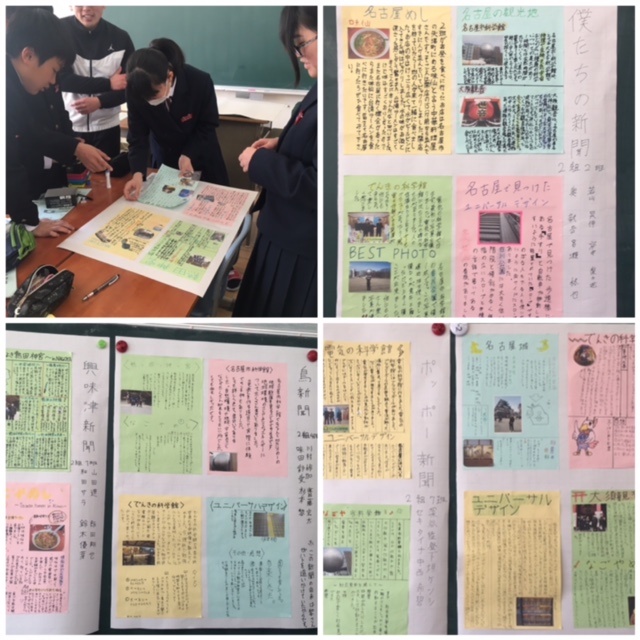 社会見学で名古屋分散学習に行ってから2週間、班ごとに新聞が完成しました。