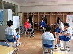 5組では、教室で体育を行っていました。椅子に座りながらできるストレッチなので、家でも気軽にできそうですね。3年生の数学の授業では、入試に向けていろいろな問題を解いていました。少人数なので、お互いに相談しあえる雰囲気もいいですね。