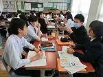 同じく3年生の公民の授業では、裁判員制度に関連して、架空の事件について、有罪とするか無罪とするか考えていました。「実際に裁判員に選出されたときはもっと責任があるんだろうな」という声も聞こえていました。