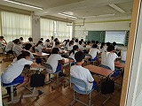 今日は、教室でZoomにて表彰式・始業式を行った後、担任や学年主任から話があり、夏休みの宿題を提出しました。