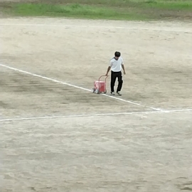 グランドをみると水越先生が、