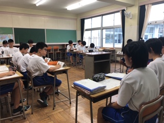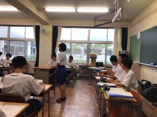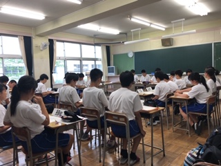 生徒会役員、各クラスの室長、委員会の委員長が全校の代表として、話し合いを行いました。学校をもっとよくするために、校則などについて話し合っています。活発な会議が繰り広げられていました。