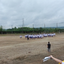今日は、競技種目の集合隊形や場所、移動などの一部をやりました。