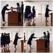 最後に、2学期に新しく三重平中学校にいらっしゃった鎌倉先生、梶先生と、12月いっぱいでお休みになられる横山先生からご挨拶がありました。
