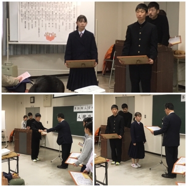 2/16(土)午後、三重地区人権集会があり、人権標語部門の表彰式がありました。本校からは、1年生の笠井瑶平さんと藤田結紀歩さんの作品が優秀賞に選ばれました。本当におめでとうございます。