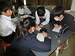 1年生の授業中、理科室が真っ暗なのに声が聞こえてくるので、「何をしているのだろう?」とのぞいてみると…明かりを消して、光の単元に関連した実験をしていました。