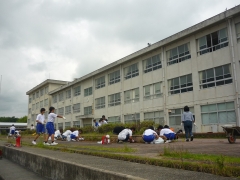先週の悪天候のため延期していた授業参観・親子除草を今日実施しました。2週連続で仕事を休んでいただいた方もいらっしゃると思いますが,全体の76%の保護者の皆様に参加していただきました。市内小中学校の中で一番敷地面積の広い本校なので除草作業は本当に大変なのですが,皆様のおかげで見違えるようにきれいになって助かりました。ありがとうございました。