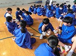1年生の総合的な学習では、防災訓練を行いました。三重西連合自治会・三重西防災リーダー会の皆さんを講師に迎え、体育館の中と外に分かれて教えていただきました。