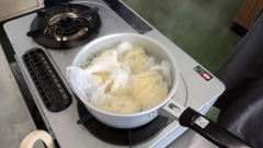 お鍋に小皿を置いてぐつぐつ………