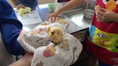 先日収穫したさつまいもを使って調理実習が行われていました。